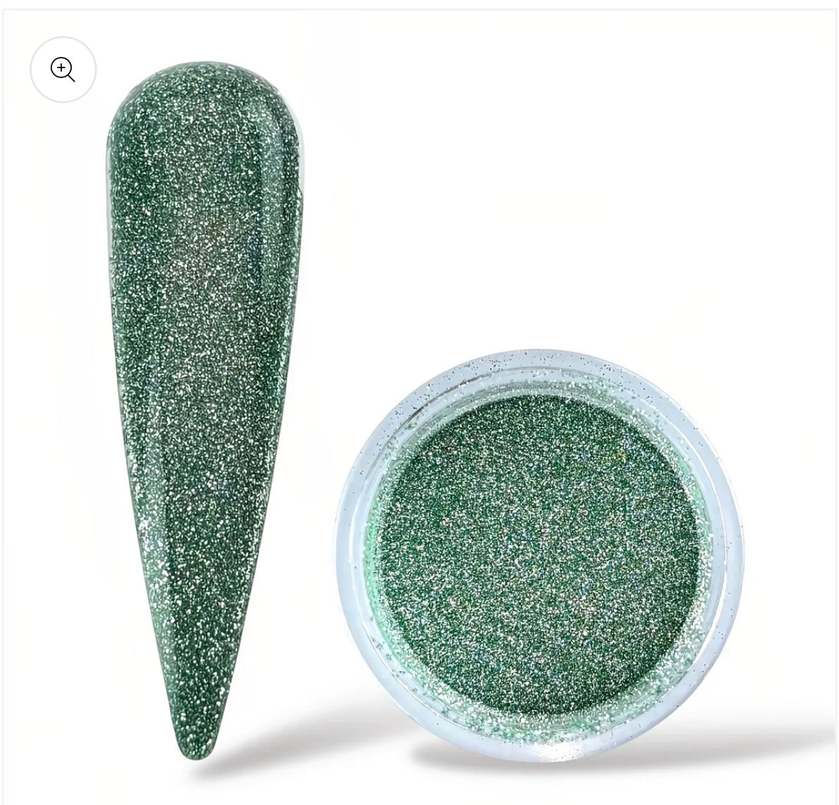 A striking diamond-reflective green glitter that glows like an emerald tide.